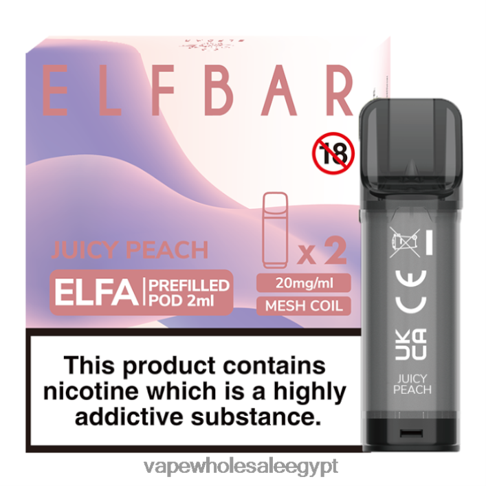 2R86DB332 – Vape مصر الجديدة عصير الخوخ ELFBAR Elfa جراب مملوء مسبقًا – 2 مل – 20 ملجم (عبوتان)