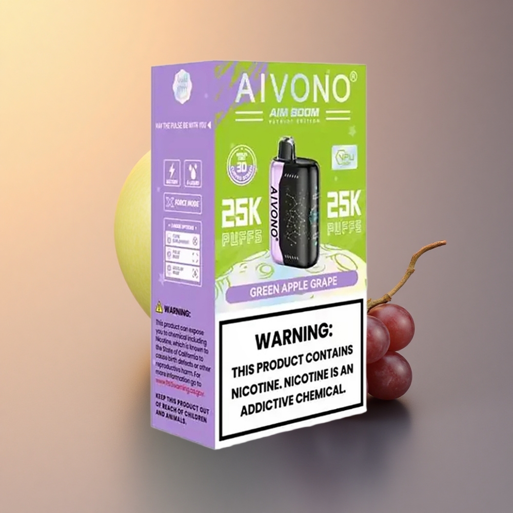 Aivono Aim Boom 25000 Puffs تفاحة خضراء عنب – 0% نيكوتين – 650 مللي أمبير