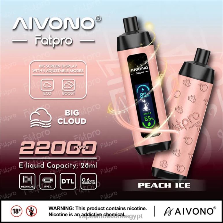 Aivono Fatpro 22000 جليد الخوخ – R6RTR5 Disposable Vape Cairo
