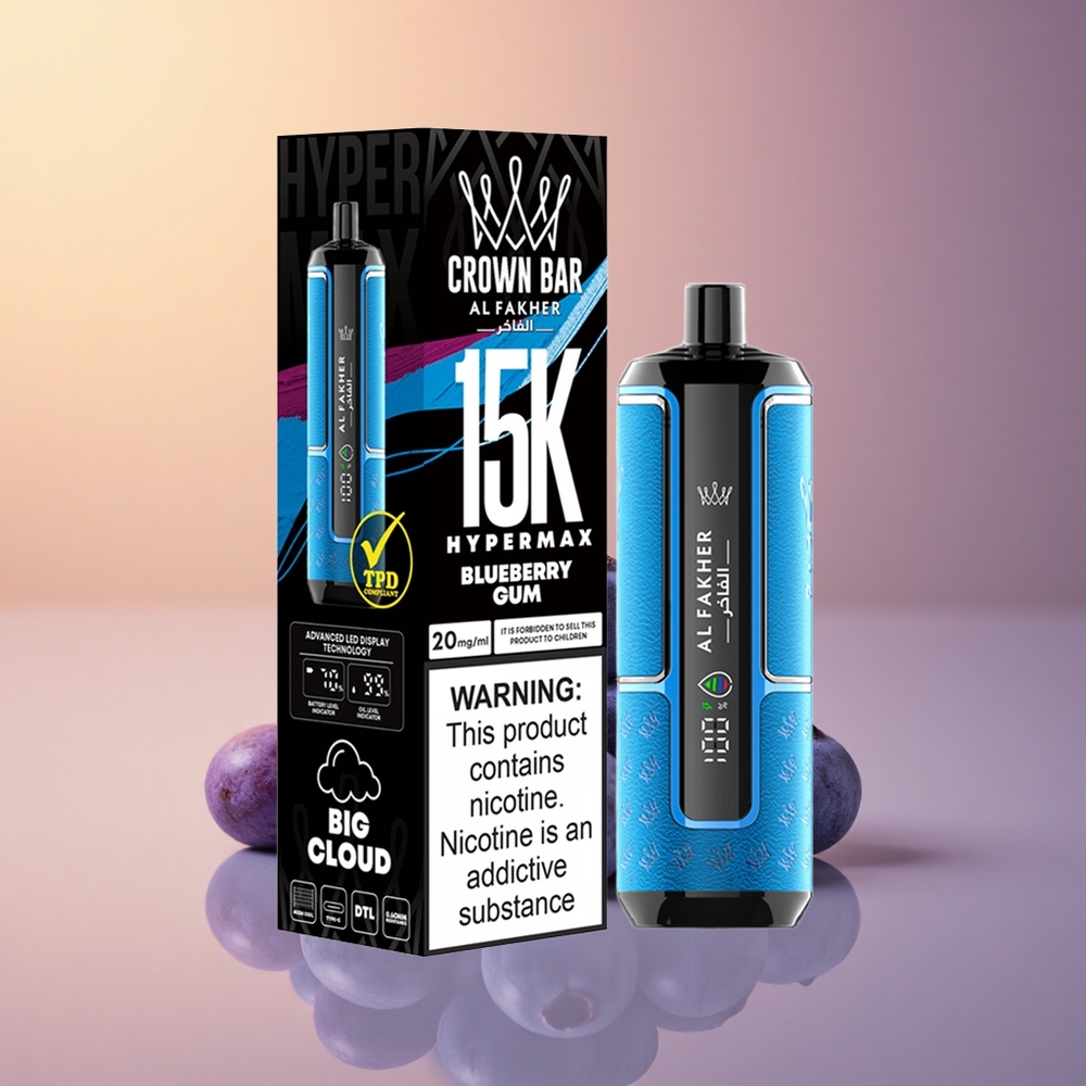 Al Fakher Crown Bar 15K Hypermax علكة التوت الأزرق مع سعة بطارية 600 مللي أمبير وسعة سائل إلكتروني 22 مل