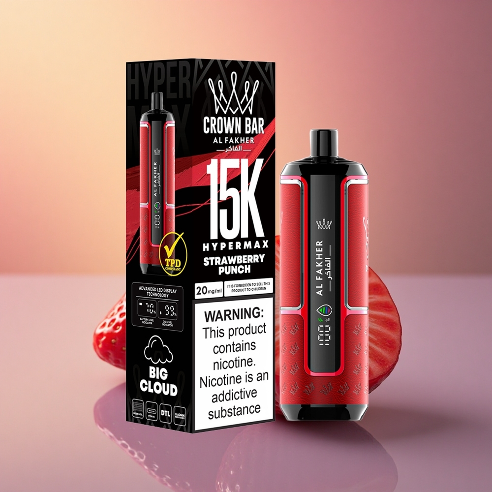 Al Fakher Crown Bar 15K Hypermax لكمة الفراولة مع سعة بطارية 600 مللي أمبير وسعة سائل إلكتروني 22 مل