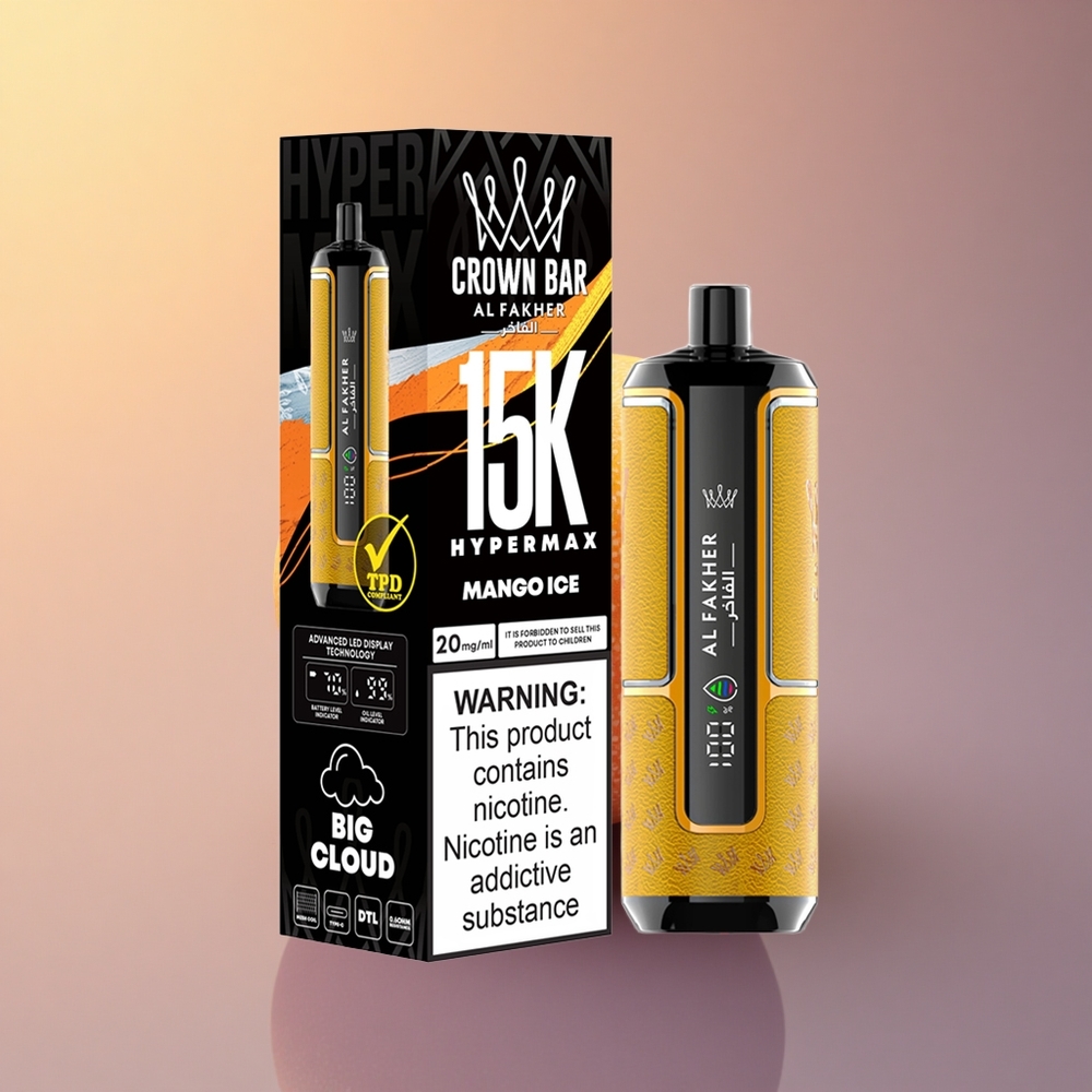 يتميز Al Fakher Crown Bar 15K Hypermax بتصميم عصري وأنيق، يناسب جميع الأذواق مع أداء قوي يدوم طويلاً، مما يجعله الخيار الأمثل للمستخدمين الذين يبحثون عن الجمع بين الراحة والأسلوب.