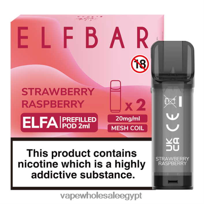 2R86DB321 – Vape مصر الفراولة، التوت ELFBAR Elfa جراب مملوء مسبقًا – 2 مل – 20 ملجم (عبوتان)
